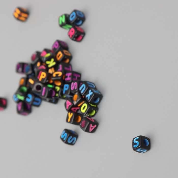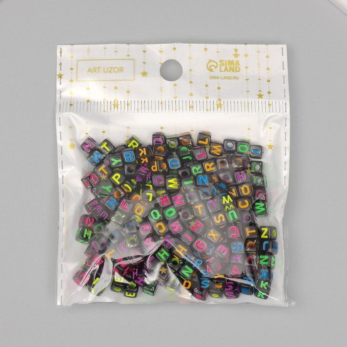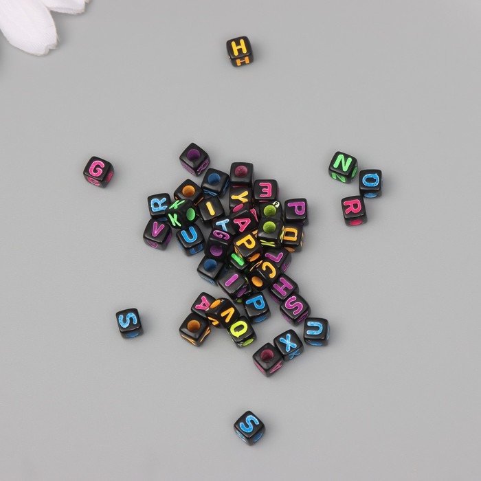 Бусины для творчества пластик "Английский алфавит" черные с цветным набор 20 гр 0,4х0,4 см 1044301