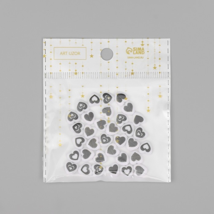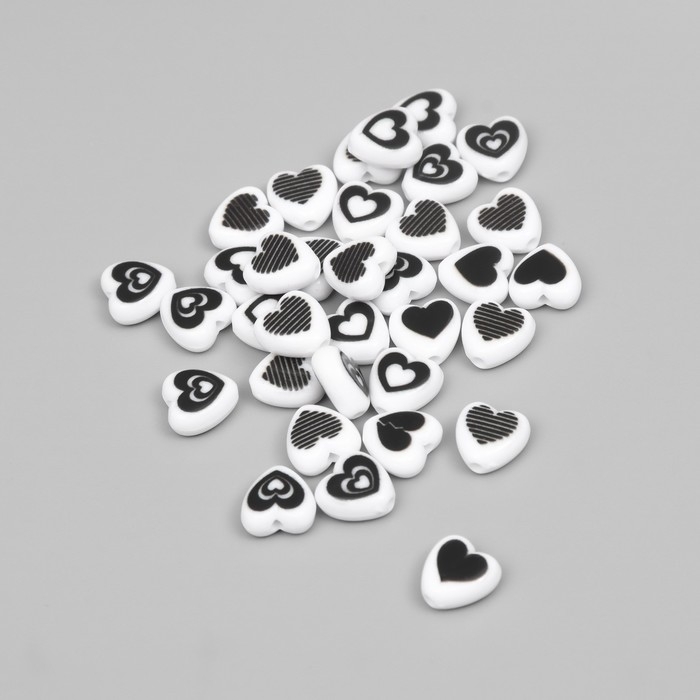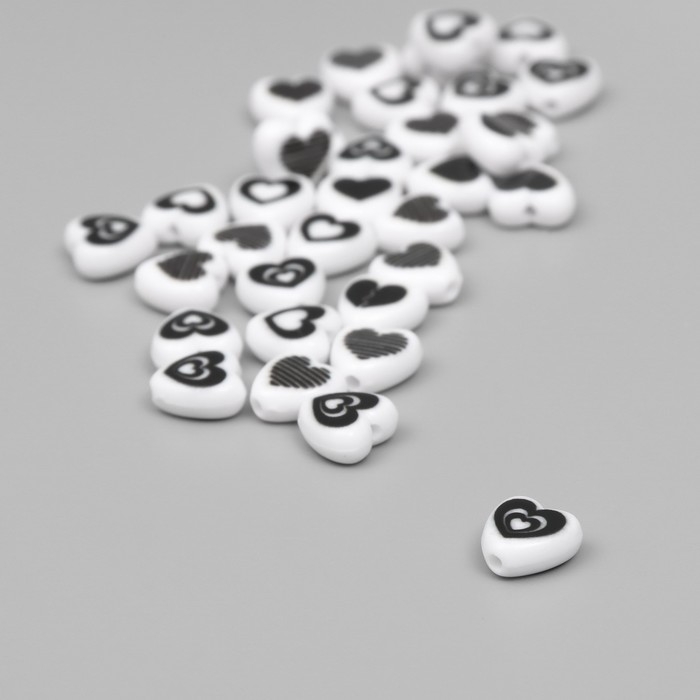 Бусины для творчества пластик "Нарисованное сердце" бело-черное набор 30 шт 0,8х0,4 см