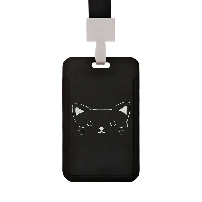 Бейдж вертикальный "Кот", внешний размер - 11 х 7 см., внутренний размер - 8,2 х 5,2 см, лента 42 см
