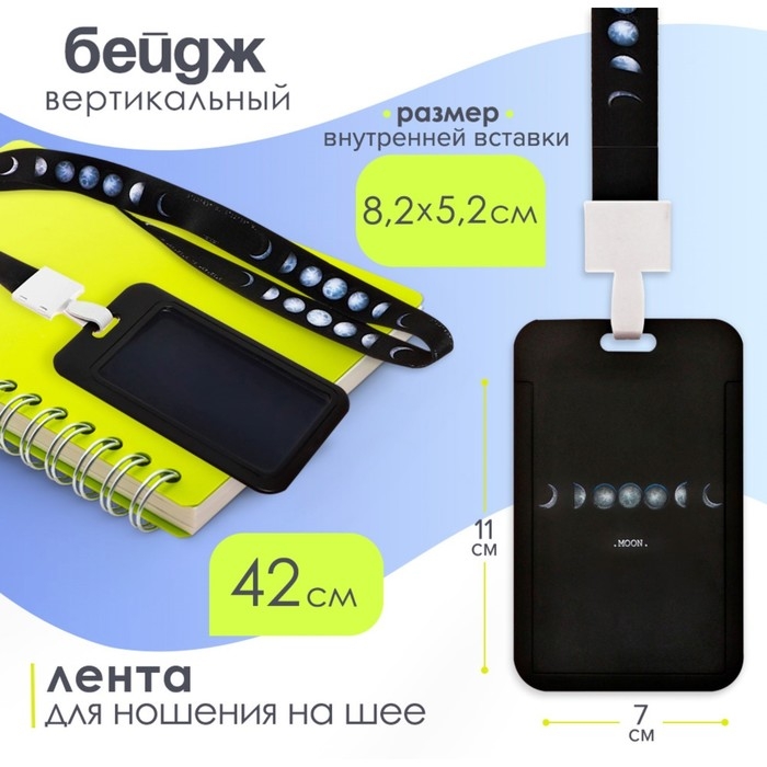Бейдж вертикальный "Луна", внешний размер - 11 х 7 см., внутренний размер - 8,2 х 5,2 см, лента 42 см