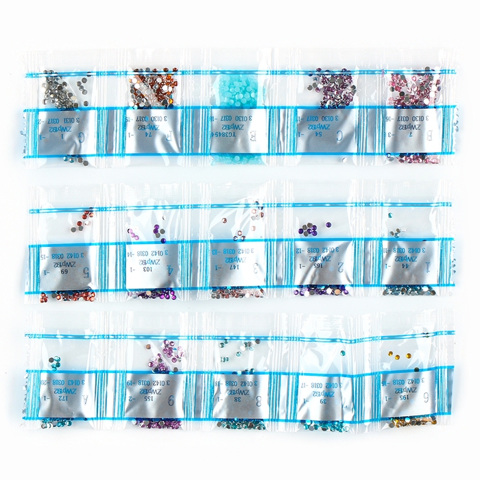 - Разложите кристаллики с помощью карандаша по указанной схеме, заполнив полотно. На картине уже обозначены необходимые оттенки. Холст с клеевым покрытием будет надёжно удерживать стразы.