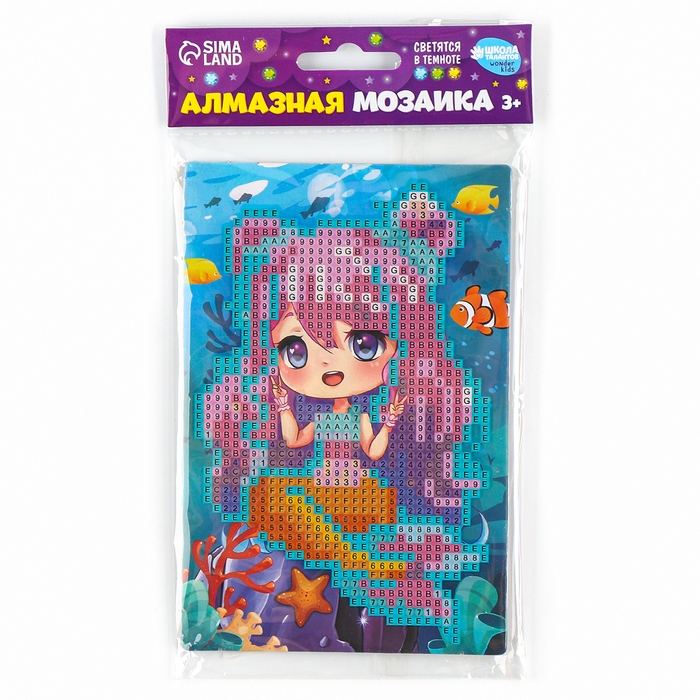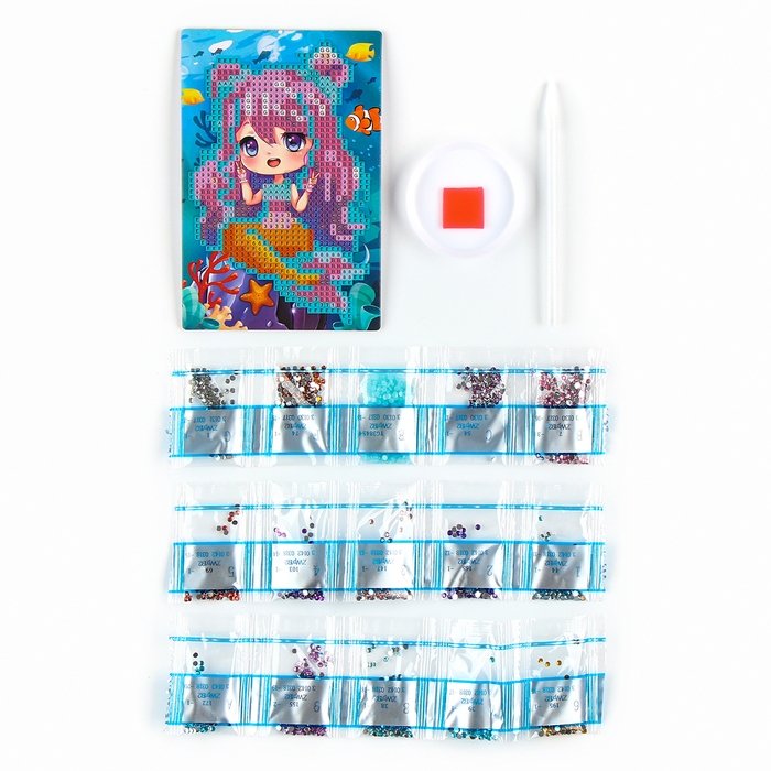 Алмазная мозаика для детей со светящимися стразами «Милая русалка», 10 х 15 см, набор для творчества