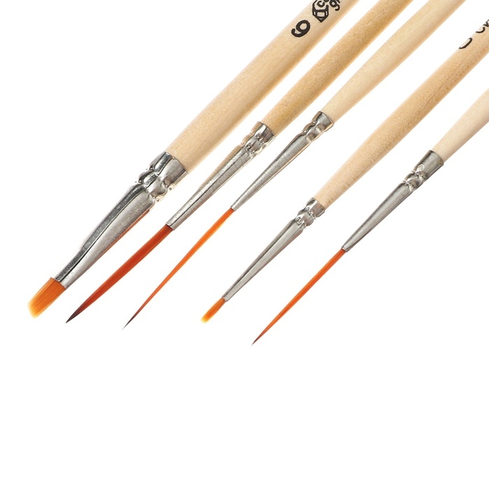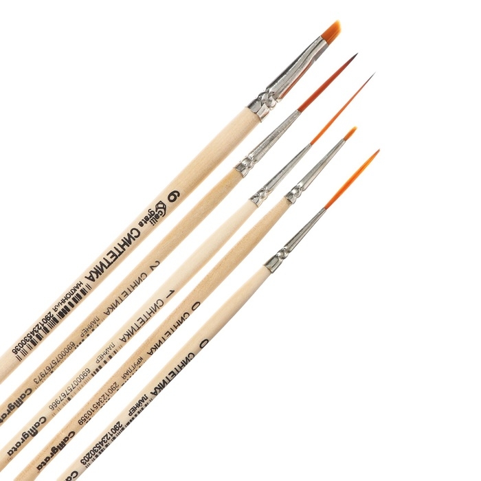 Набор кистей Синтетика, 5 штук Calligrata (Лайнеры №: 0,1,2; наклонная №6, кругл №0), пакет