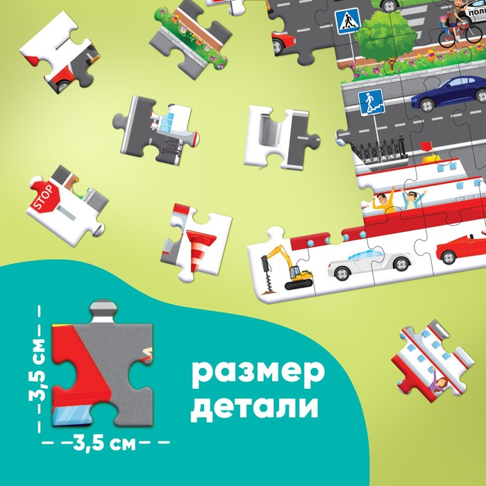Пазл состоит из крупных деталей, что очень удобно для маленьких пальчиков. Размер одной детали: 3,5 х 3,5 см.