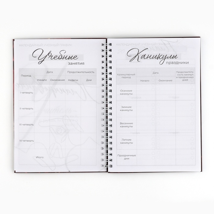Этот планинг — незаменимый помощник любого преподавателя в организации учебного процесса и выполнении ежедневных рабочих задач. Он идеально подойдёт учителям общеобразовательных школ, лицеев и гимназий.