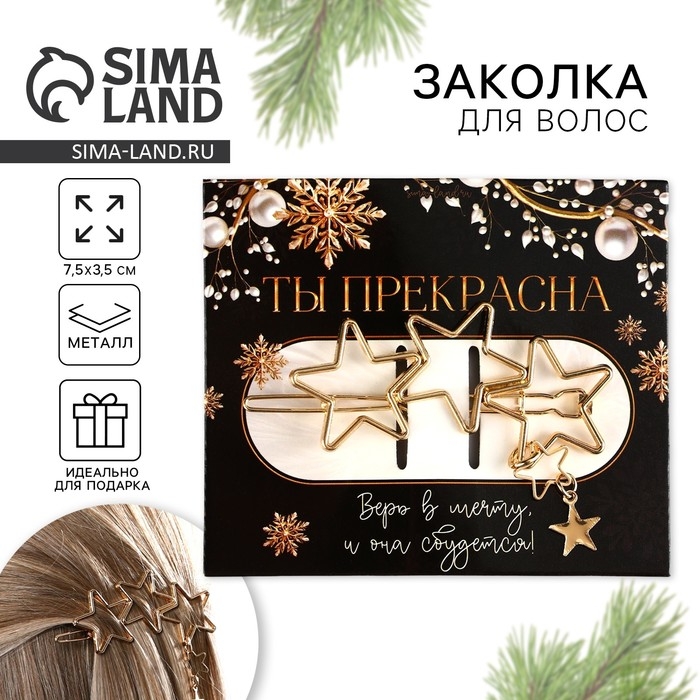 Заколка для волос новогодняя «Ты прекрасна», на Новый год, 9,5 х 8 см