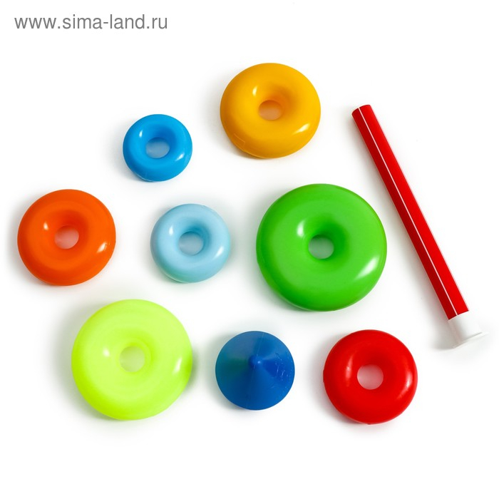 Каждое кольцо разного цвета и пронумеровано. Собирая пирамидку, ребёнок освоит основные цвета радуги и получит базовые навыки счёта. Игры с красочной пирамидкой разовьют у крохи мелкую моторику, координацию движений, воображение, логическое и образное мышление, навыки конструирования. Он научится различать предметы по величине, сравнивать их и делать выводы. Также юный конструктор познакомится с такими понятиями, как «больше», «меньше», «круг», «конус», «плоский», «объёмный».