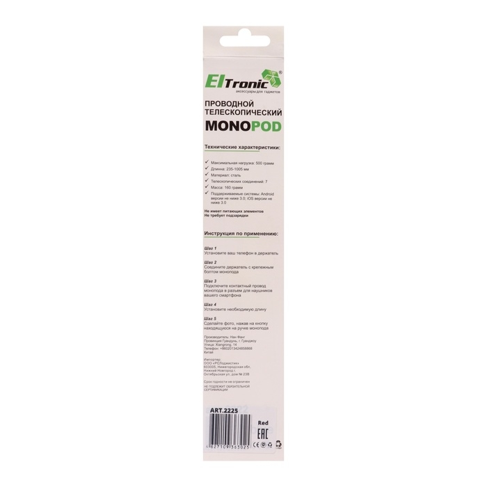 Монопод ELTRONIC 2225, 24-100 см, Android/IOS, красный