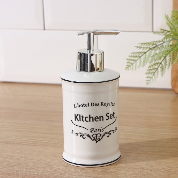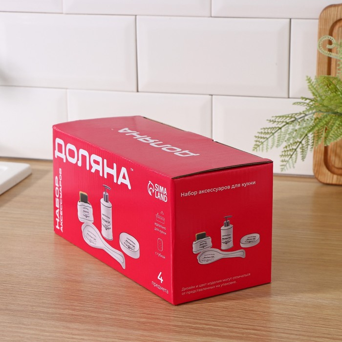Набор аксессуаров для кухни Доляна «Уют», 4 предмета (дозатор 300 мл, мыльница, подставка для губки, подставка для ложки), цвет белый