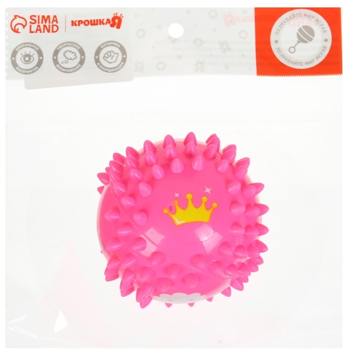 Развивающий тактильный мячик "Принцесса", диаметр 9 см, с пищалкой, в пакете, Крошка Я