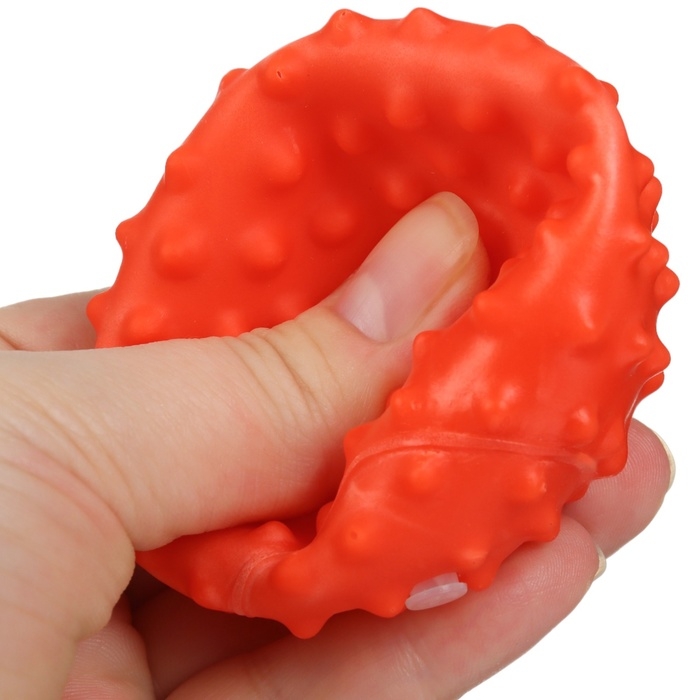 Мячики с рельефной массажной поверхностью способствуют развитию мелкой моторики и тактильных ощущений. Давление на фактурную поверхность мячиков стимулирует и благоприятно воздействует на нервные окончания, ответственные за большинство процессов в организме. Шарики имеют яркие цвета, которые способствуют развитию зрения, а пищалка внутри развивает слуховое восприятие.