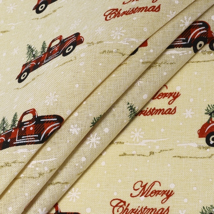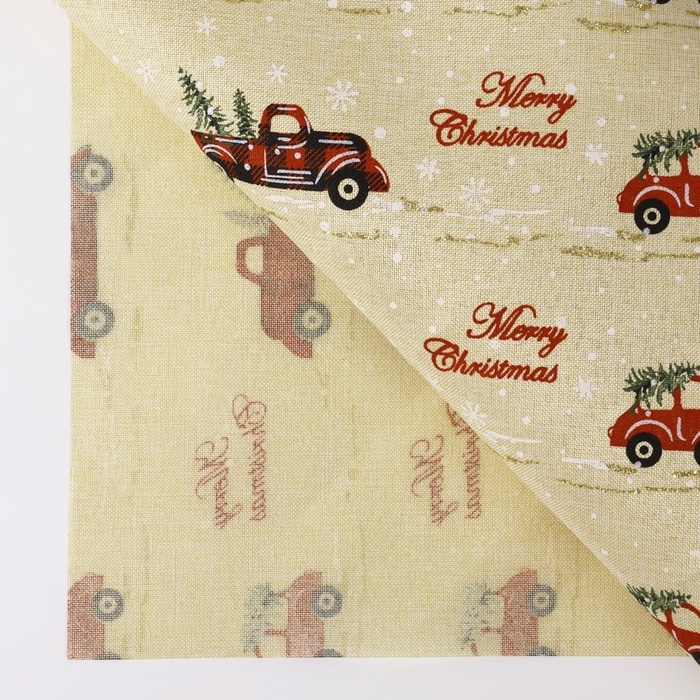 Лоскут с новогодним рисунком «Машинка с ёлками» обладает средней плотностью и отлично подойдёт для лоскутного шитья, пэчворка, пошива игрушек, скрапбукинга, изготовления предметов столового текстиля. В зимний период пригодится для оформления подарков и декорирования помещений.