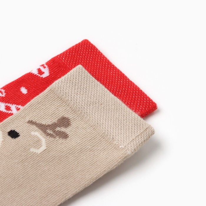 Новый год.Гольфы детские 2 пары Крошка Я, 8-10 см, бежевый / красный