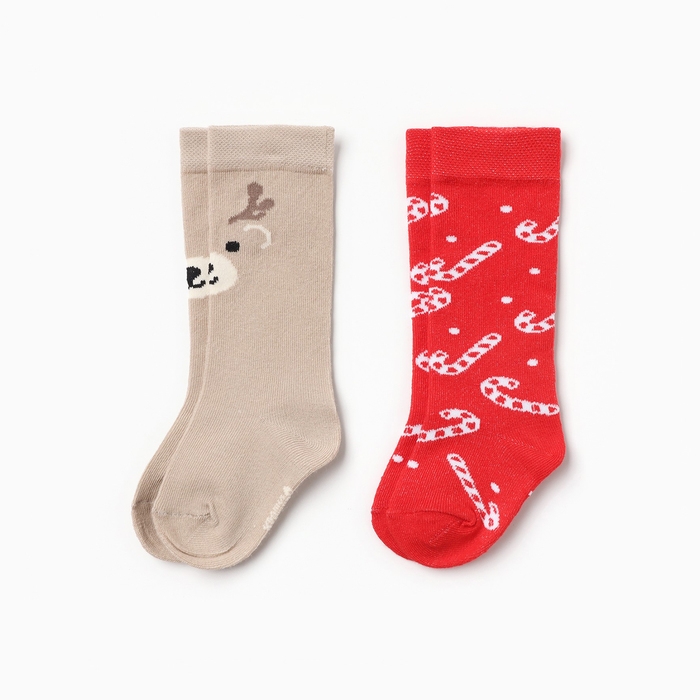 Новый год.Гольфы детские 2 пары Крошка Я, 10-12 см, бежевый / красный