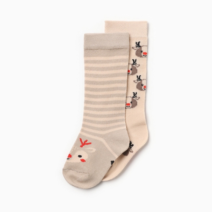 Новый год.Гольфы детские 2 пары Крошка Я, 10-12 см, бежевый