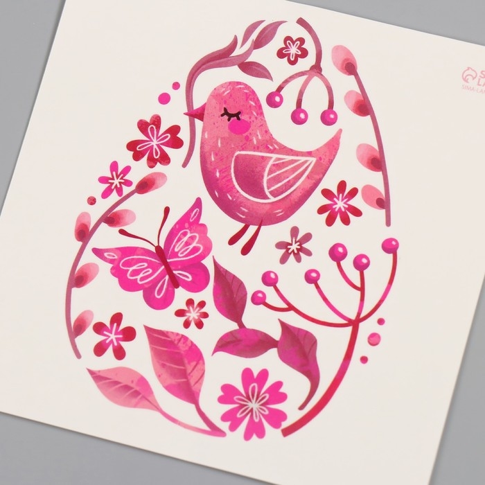 Татуировка на тело цветная "Яйцо с розовыми узорами" 10х10 см