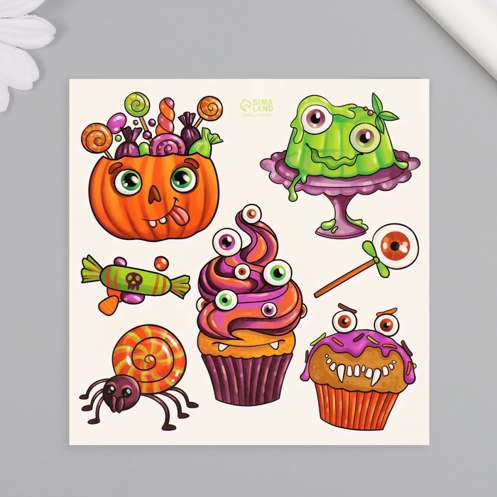 Татуировка на тело цветная "Ужасные сладости" 10х10 см