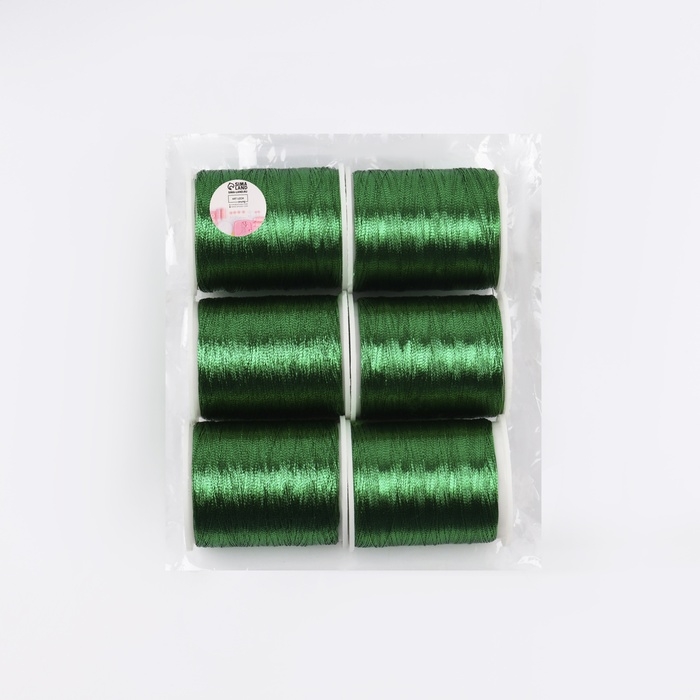 Набор металлизированных ниток, 91 ± 1 м, 6 шт, цвет зелёный