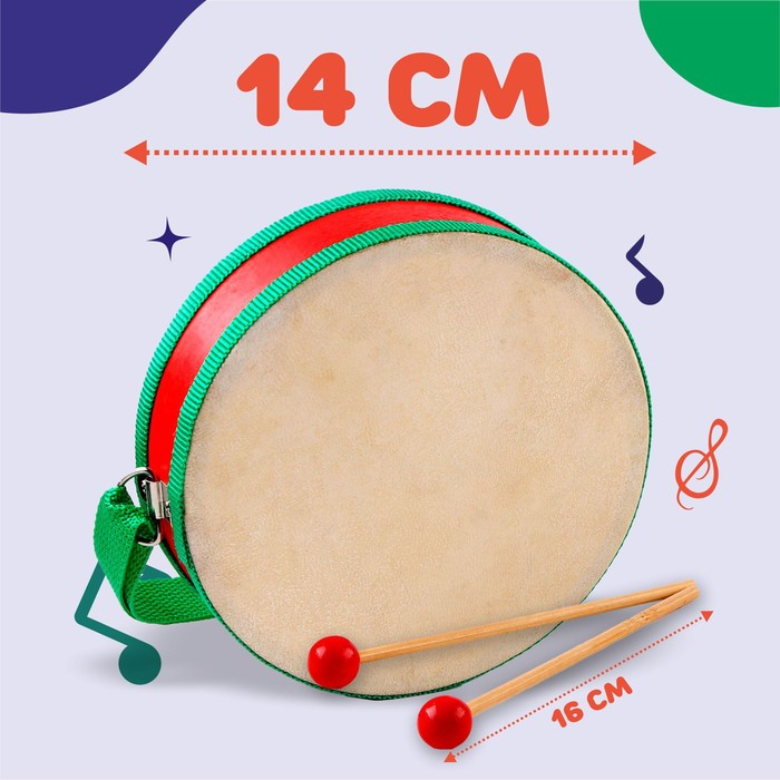 Игрушка музыкальная «Барабан», бумажная мембрана, размер: 14 × 14 × 4,5 см, цвета МИКС