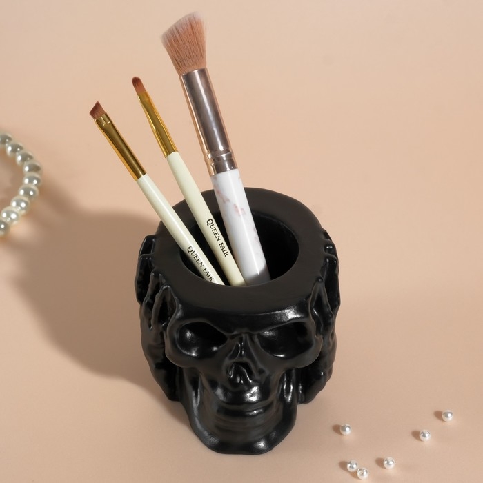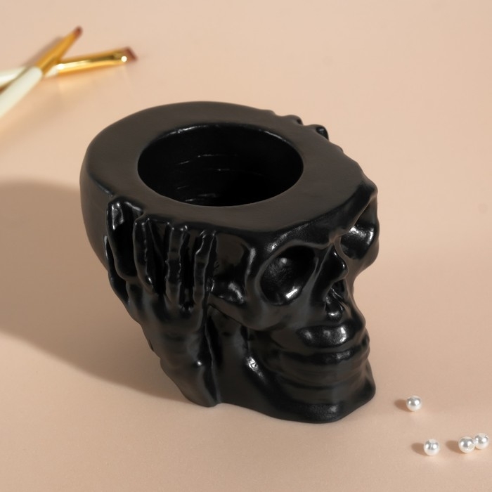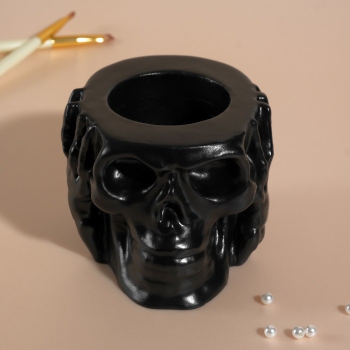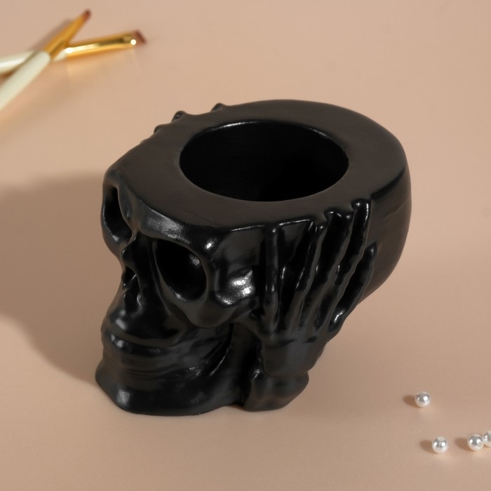 Предмет интерьера "Череп Тишина" 6,5х10 см черный матовый