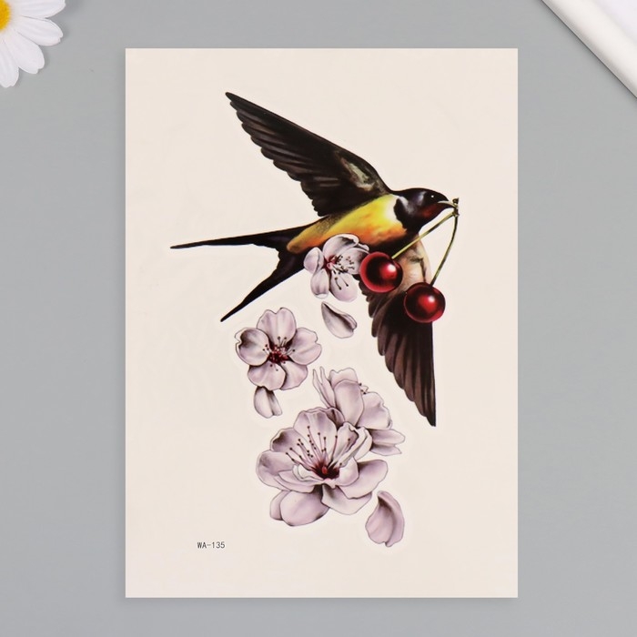 Татуировка на тело цветная "Ласточка" 26,1х14,6 см