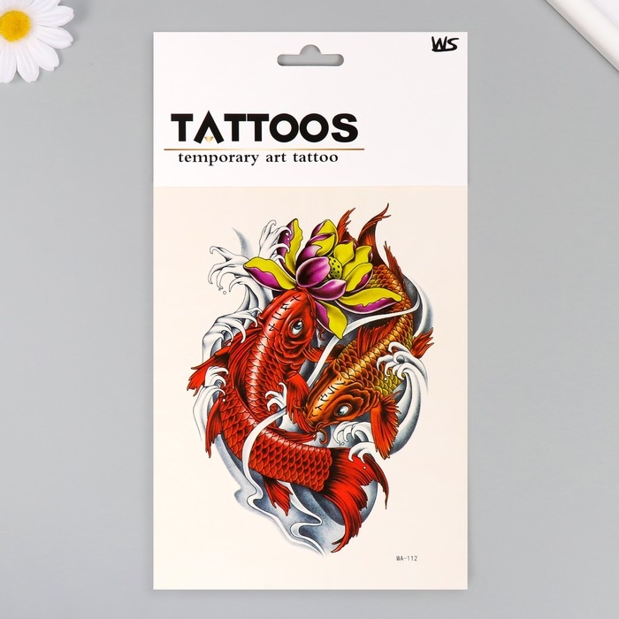 Татуировка на тело цветная "Красные карпы" 26,1х14,6 см