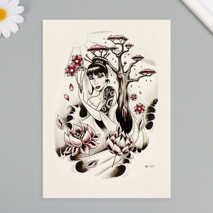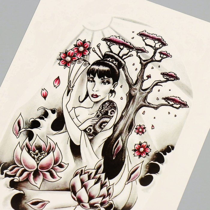 Татуировка на тело цветная "Леди Сакура" 26,1х14,6 см
