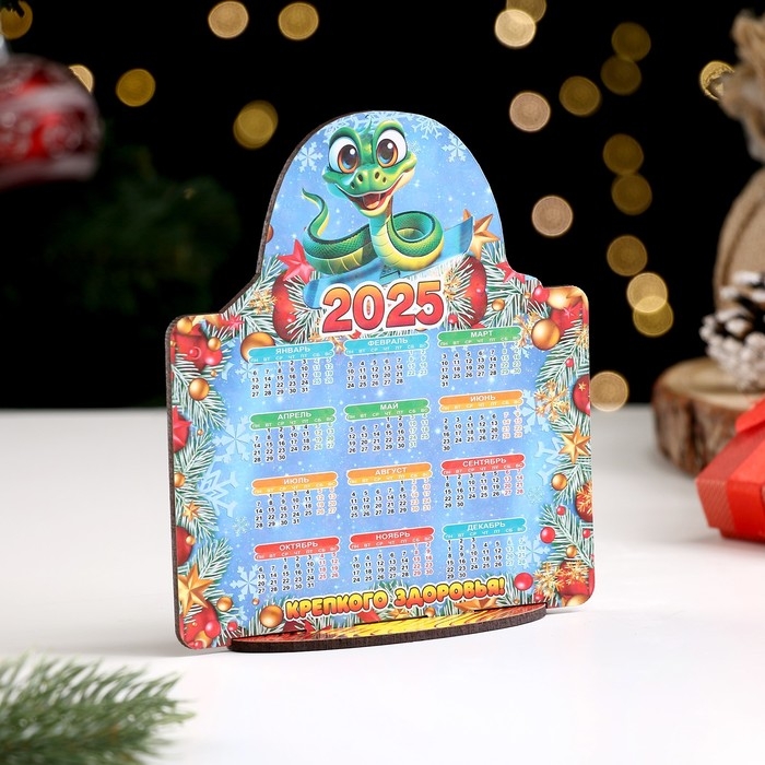 Календарь деревянный на подставке "Символ года 2025.Крепкого здоровья"