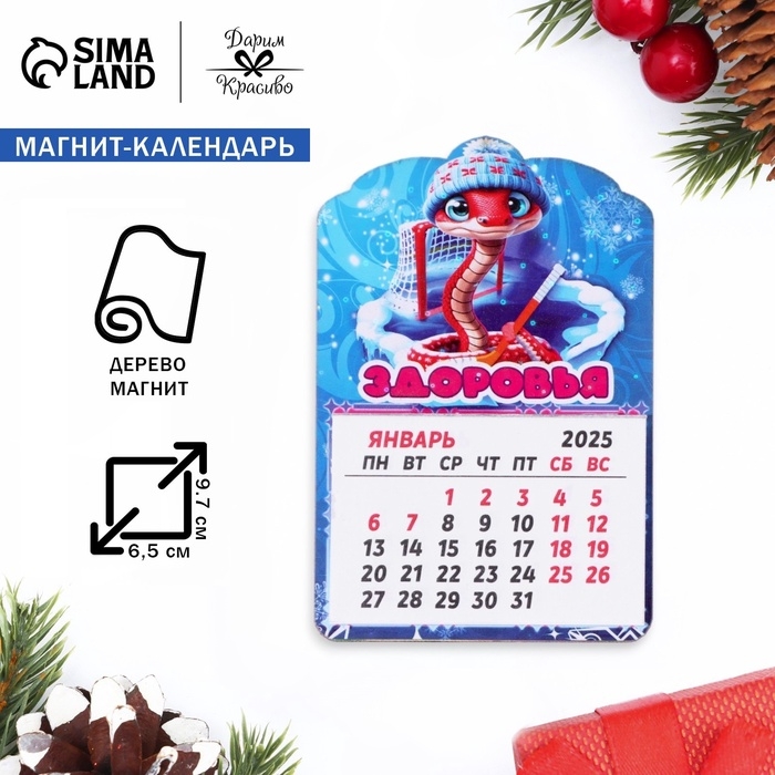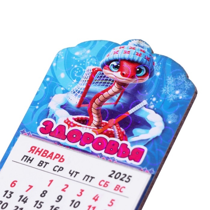 Магнит новогодний календарь "Символ года 2025.Здоровья!", 12 месяцев, голубой