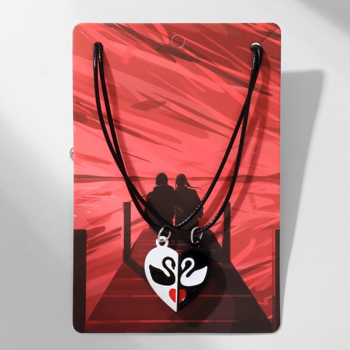 Кулоны «Неразлучники» на магните, лебеди в сердце, цвет чёрно-белый, 40 см