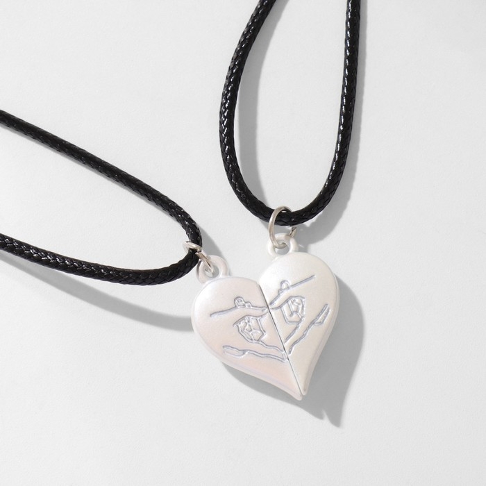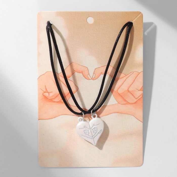 Кулоны «Неразлучники» на магните, сердце, цвет серебро, 40 см