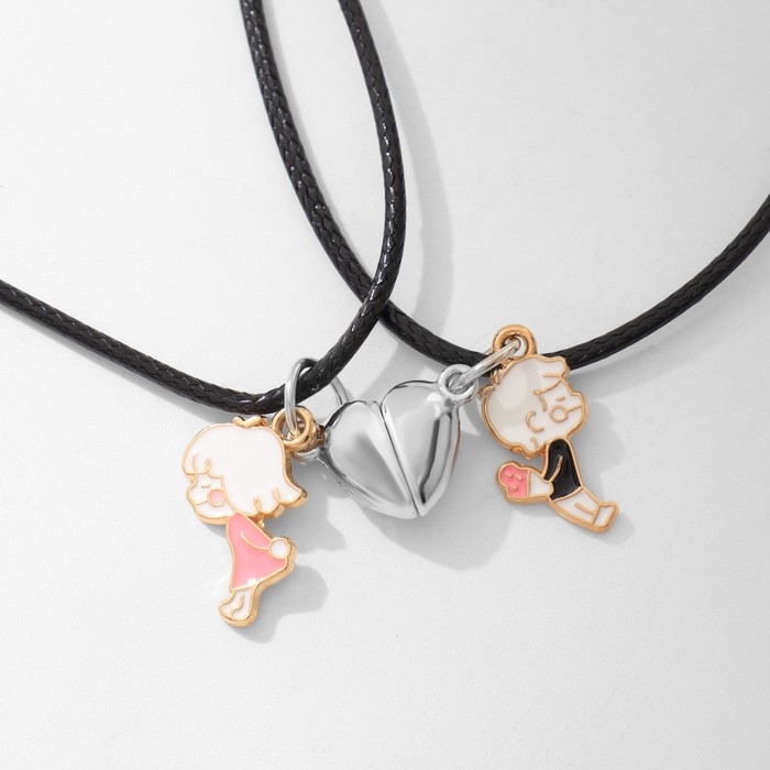 Кулоны «Неразлучники» на магните, мальчик и девочка, цветные, 40 см