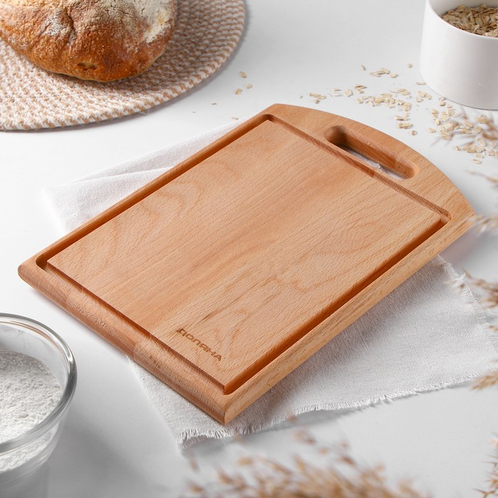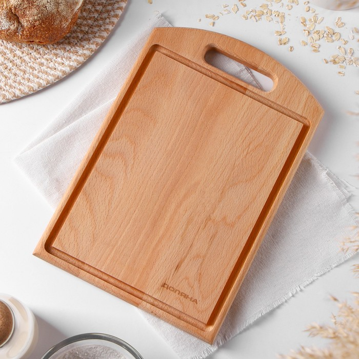 Доска разделочная Доляна «БУКовский», 30×20×2 см, бука, с ручкой и кровостоком, бук