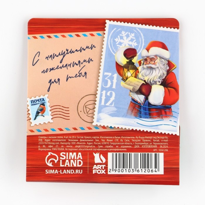 Новый год. Стикеры закладки с липким слоем«С наилучшими пожеланиями», 4 шт, 20 л