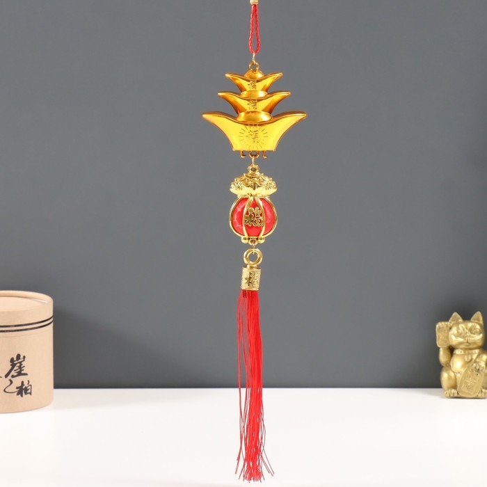 Подвеска пластик, текстиль "Денежный мешок и пирамида из слитков ямб" 2,7х7,5х35 см