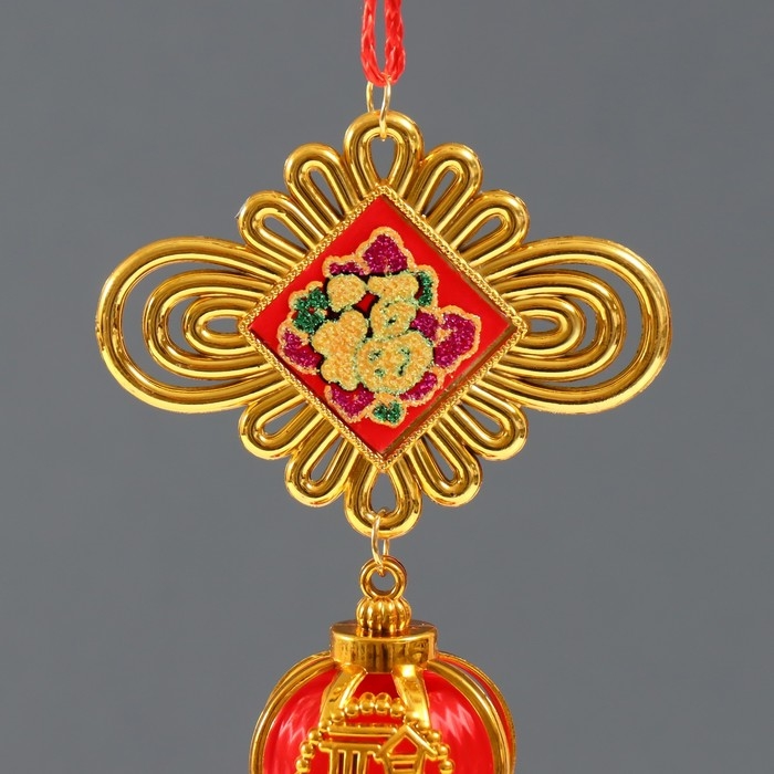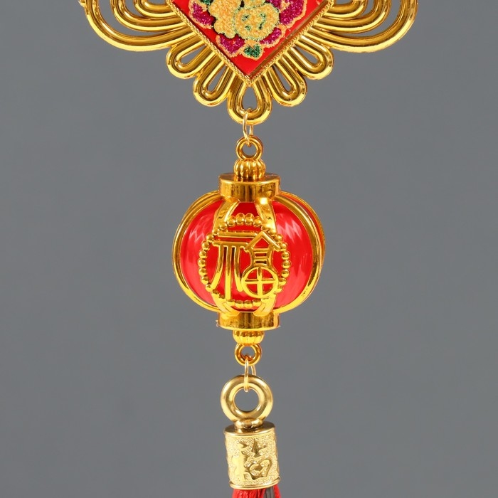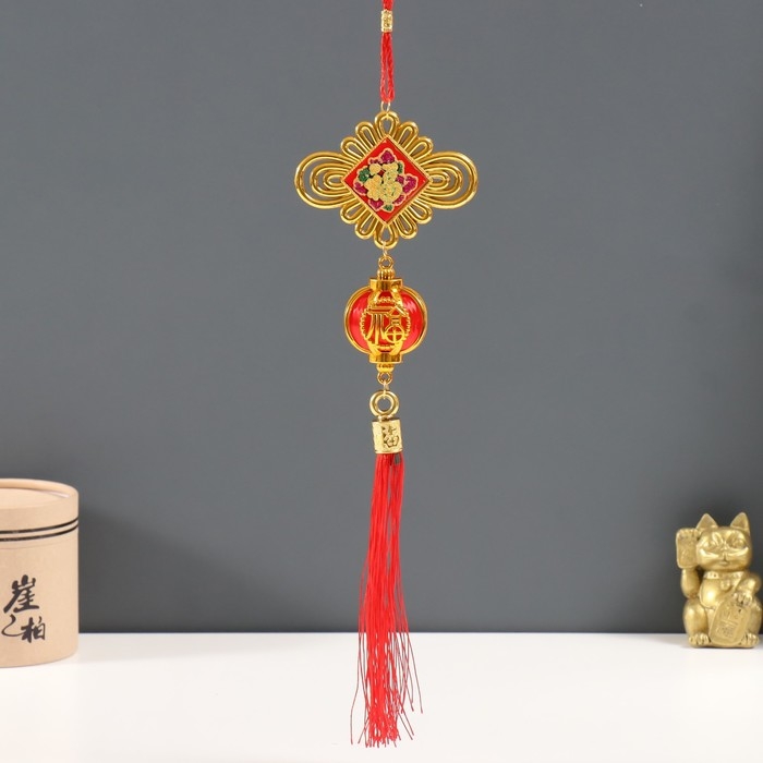 Подвеска пластик, текстиль "Китайский фонарик и узел - На счастье" 4,2х8,2х39 см