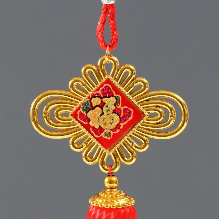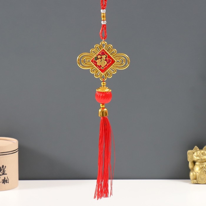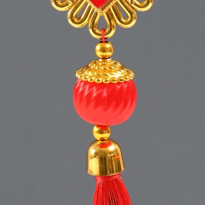 Подвеска пластик, текстиль "Китайский фонарик и узелок - На счастье" 3х8,5х36 см