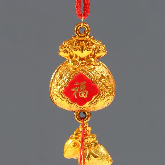 Подвеска пластик, текстиль "Золотые денежные мешки" 3х4,5х38 см