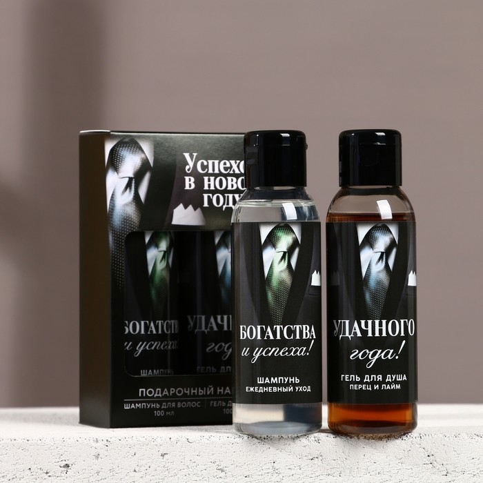 Подарочный набор косметики «Успехов в Новом Году», гель для душа и шампунь для волос, 2 х 100 мл, ЧИСТОЕ СЧАСТЬЕ