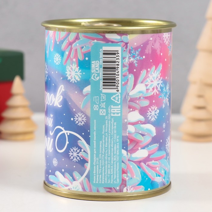 Носки в банке "Подарок для самой милой" (внутри носки женские, белые)