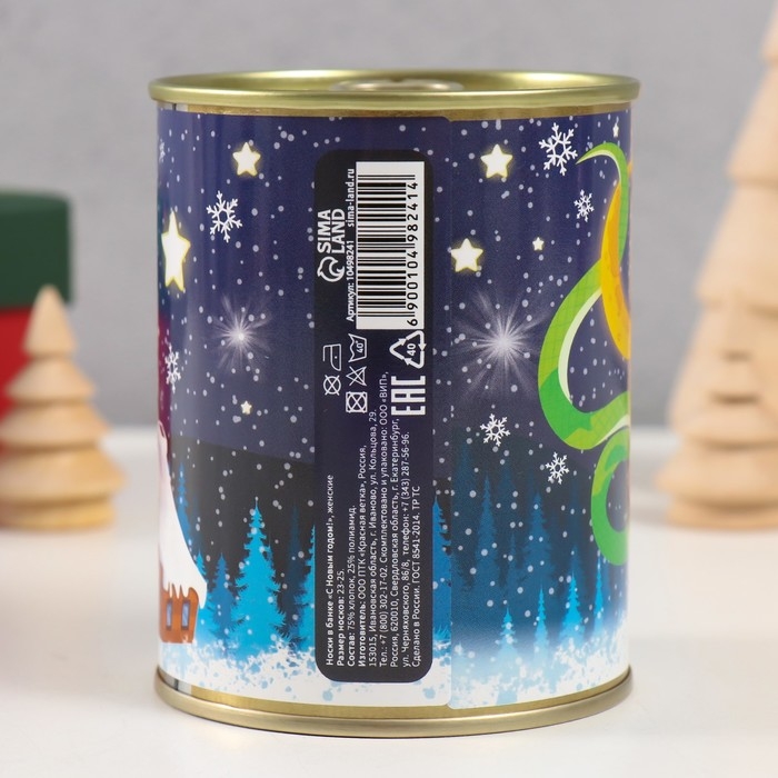 Носки в банке "С новым годом! " ((внутри носки женские, белые)