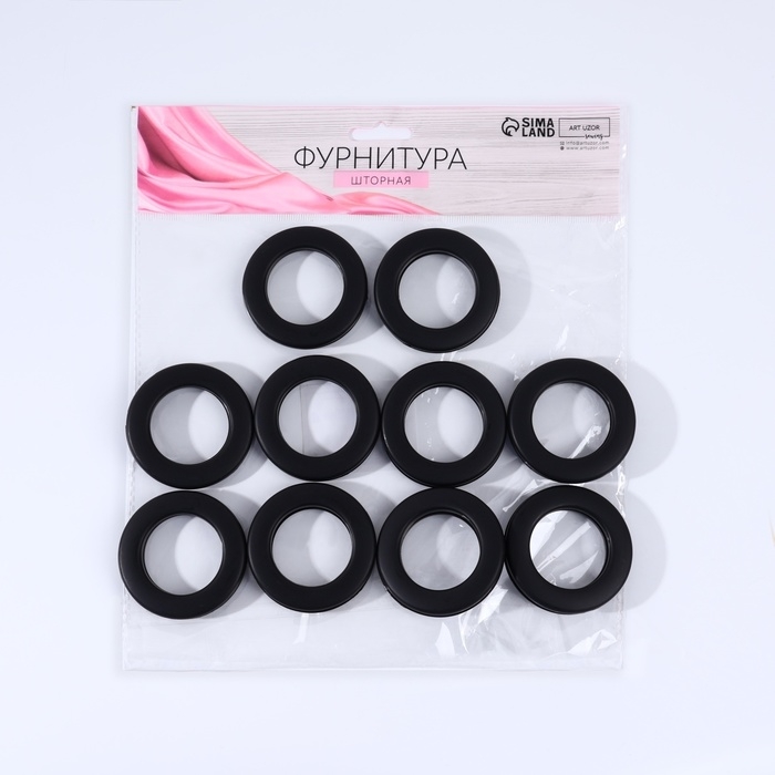 Люверсы для штор, d = 3,5/5,5 см, 10 шт, цвет матовый чёрный
