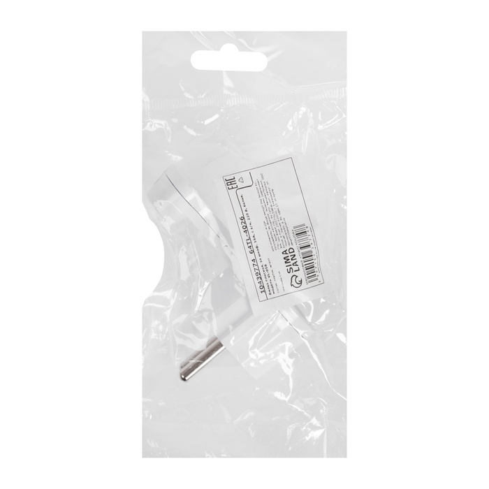 Вилка плоская, за шкаф, 16А, с з/к, 220 В, белая