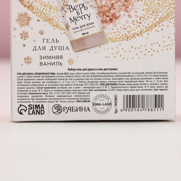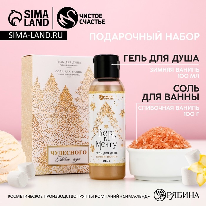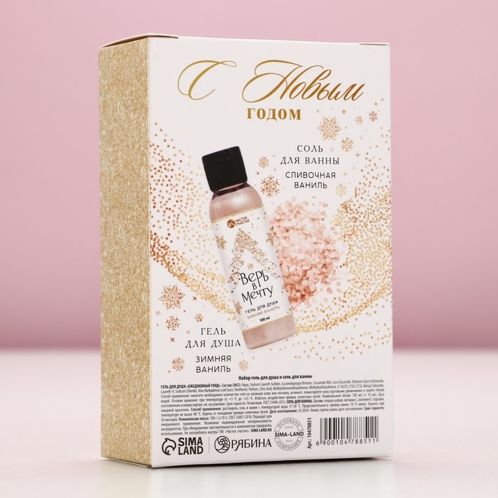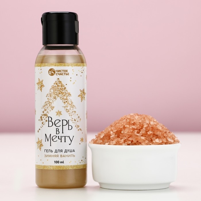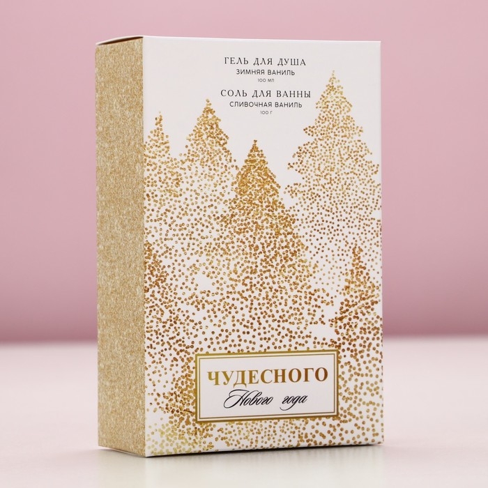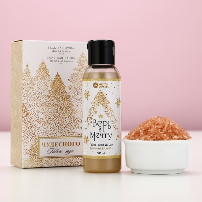 Подарочный набор косметики «Чудесного Нового Года», гель для душа 100 мл и соль для ванны 100 г, аромат зимней ванили, ЧИСТОЕ СЧАСТЬЕ
