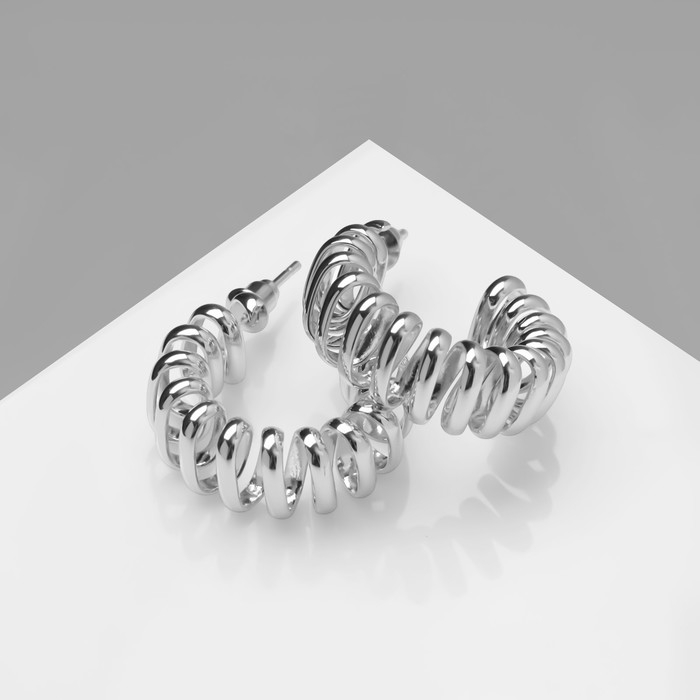 Серьги металл «Круг» пружинка, цвет серебро