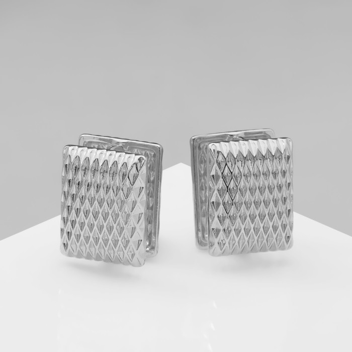 Серьги металл «Аккорд» орнамент, прямоугольник, цвет серебро