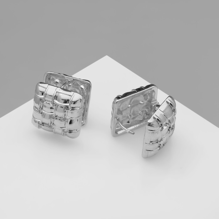 Серьги металл «Аккорд» плетение, квадрат, цвет серебро