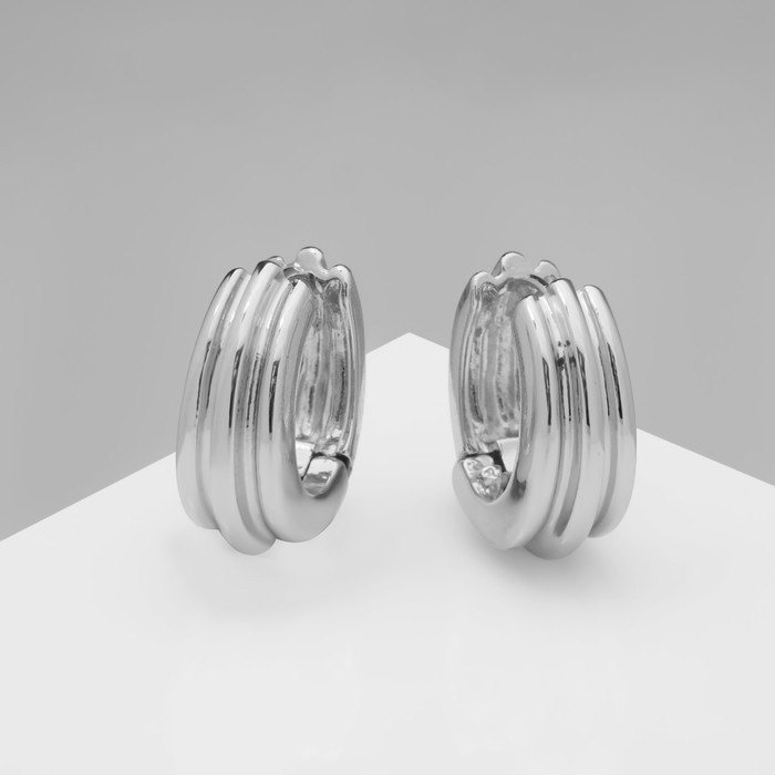 Серьги металл «Аккорд» круг полосы, цвет серебро