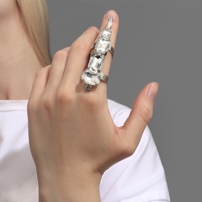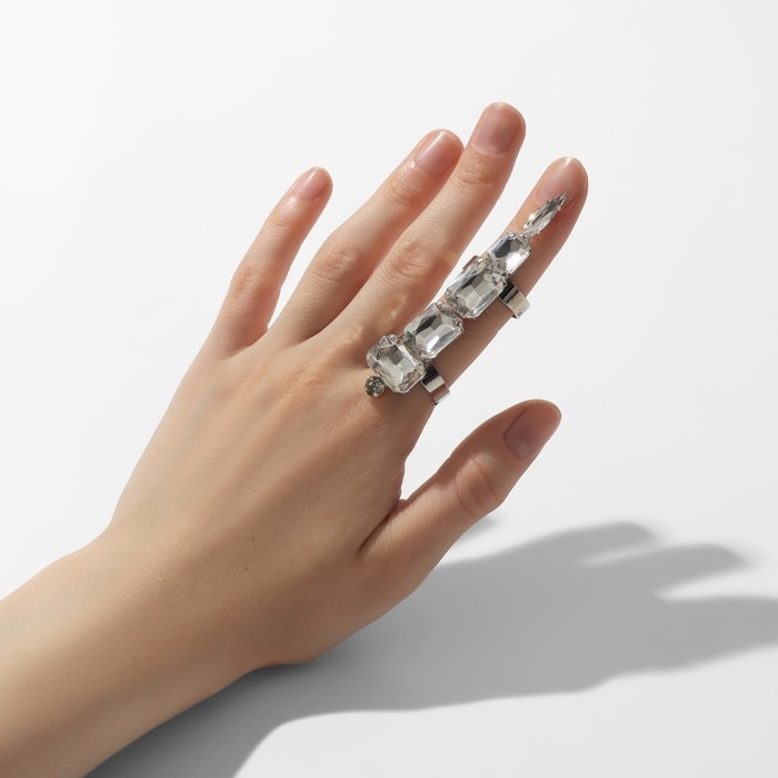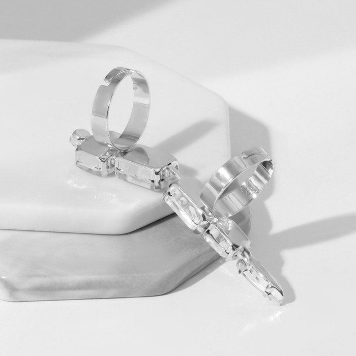 Кольцо «Ассорти» объёмный коготь, цвет белый в серебре, безразмерное