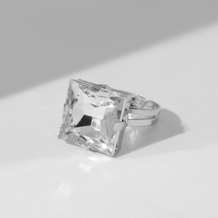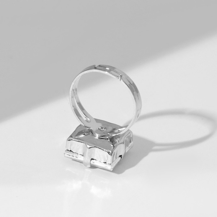Кольцо «Ассорти» объёмный квадрат, цвет белый в серебре, безразмерное